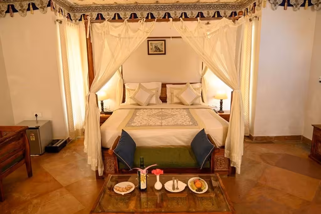 The resort is located a short drive from the safari gates, offering quick access to multiple Ranthambore zones.